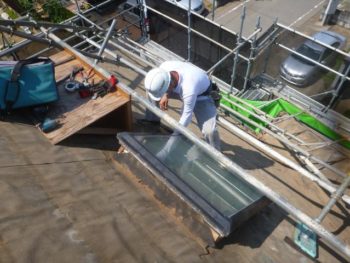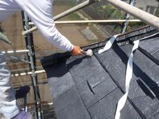 棟冠下地には『ハイロール2』を貼り付けました。ローラーを転がし圧着していきます。浮き剥がれの無い様、確認しながら進めます。