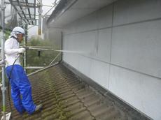 岡田瓦店の得意技!屋根上清掃『バックマン』での強力吸引。